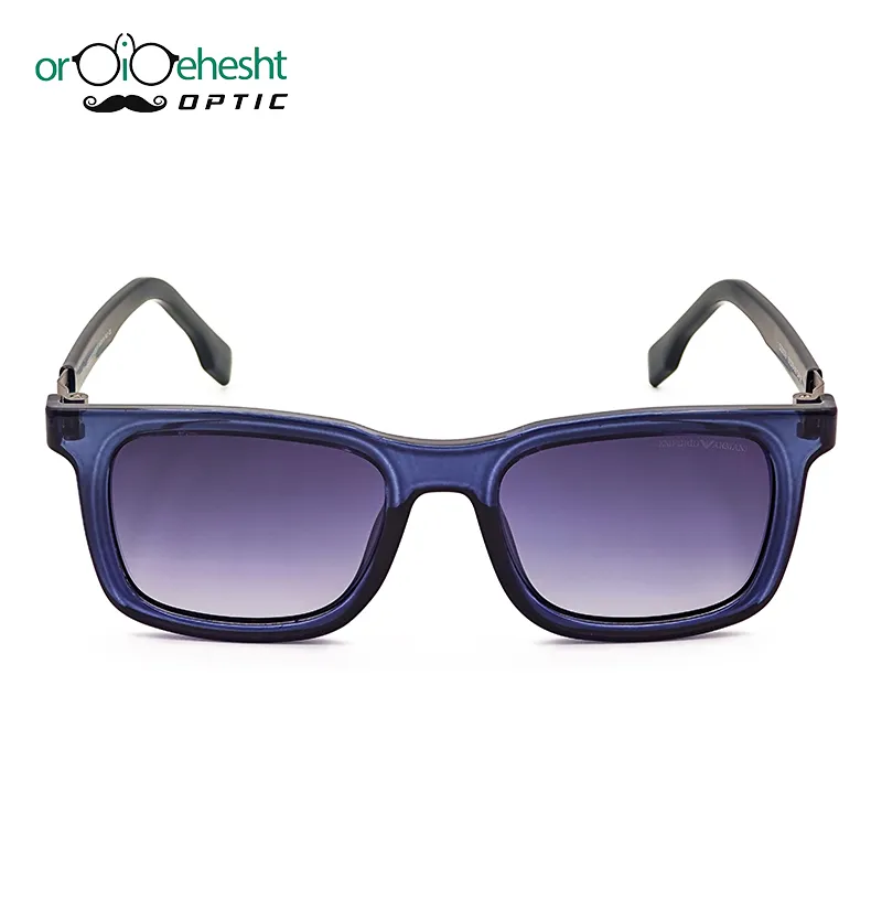 عینک آفتابی Emporio Armani | فریم سرمهای شفاف و دسته فلزی | لنز بنفش گرادیانت UV400 | مدل مستطیلی مردانه