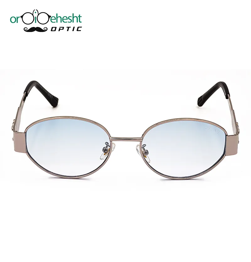 این مدل یکی از عینکهای مینیمال و ظریف بازار است؛ با فریم نقرهای براق و لنز آبی گرادیانت ملایم که چهره را روشن، نرم و استایلی لطیف ایجاد میکند.